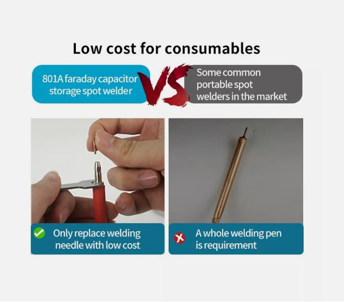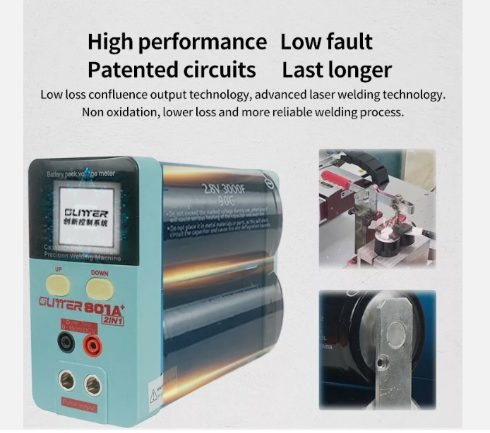 - Аккумуляторный сварочный аппарат GLITTER 801A+ оснащен двумя суперконденсаторами для накопления энергии и стабильным источником питания для импульсной точечной сварки. Максимальная мощность импульсной сварки может достигать 12 кВт, что обеспечивает надежный сварочный эффект. - Портативный сварочный аппарат имеет небольшие размеры и легкий вес, широкий диапазон входного напряжения от 100 до 240 В для использования в любом месте, где вам нужно. - Оснащенный разъемной сварочной ручкой 70A, изготовленной из высококачественной меди, вы можете легко и эффективно завершить сварочные работы, а место сварки выглядит красиво и элегантно. - Мощность импульсной сварки можно удобно регулировать с помощью двух кнопок регулировки (диапазон 0-99), легко сваривать никелированный материал толщиной 0,05-0,3 мм и чистый никель. - Используется для точечной сварки аккумуляторов, металлических изделий, электронных компонентов.